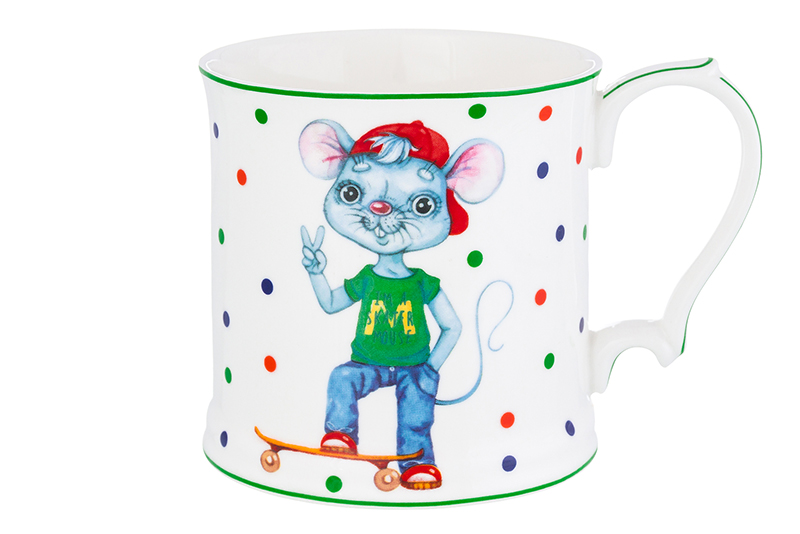 Кружка 380 мл 12*8,5*9 см "Мышонок на скейтборде" NEW BONE CHINA