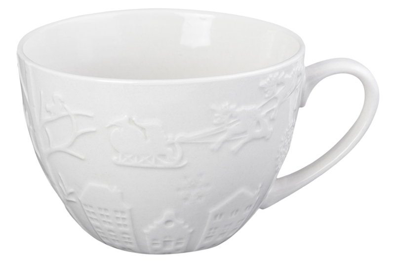 Кружка 500 мл 15*11,5*8,5 см "Новогоднее настроение на белом" выпуклый рисунок NEW BONE CHINA