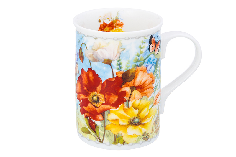 Кружка 300 мл 11*7,5*10,5 см "Яркие маки" NEW BONE CHINA