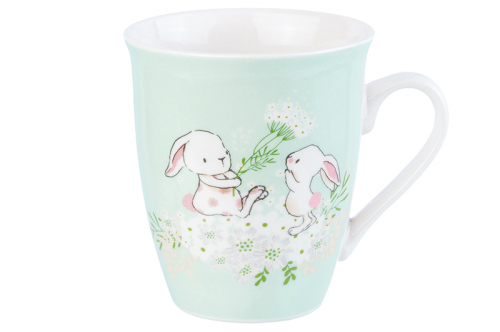 Кружка 350 мл 11,5*8,5*10,5 см "Зайки на бирюзовом" NEW BONE CHINA