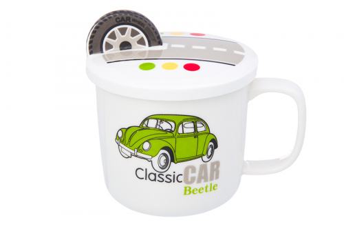 Кружка 300 мл 12*9,5*11 см "Машина зеленая" + крышка с колесом, NEW BONE CHINA
