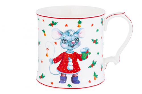 Кружка 380 мл 12*8,5*9 см "Мышка в красном платье" NEW BONE CHINA