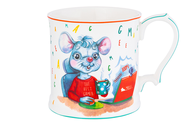 Кружка 380 мл 12*8,5*9 см "Мышонок - геймер" NEW BONE CHINA