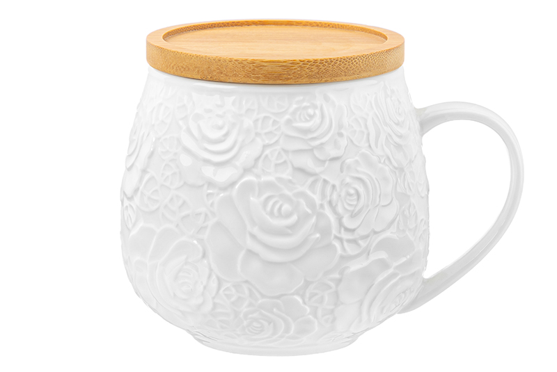 Кружка 400 мл 12,5*9,5*9,2 см "Белые розы" бочонок + крышка-подставка