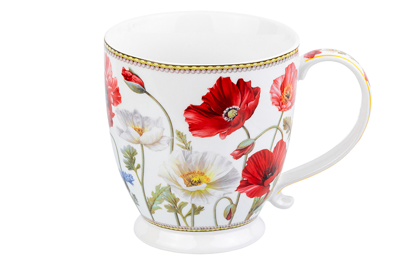 Кружка 500 мл 13,5*10*10,5 см "Маки" на ножке, NEW BONE CHINA