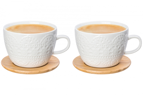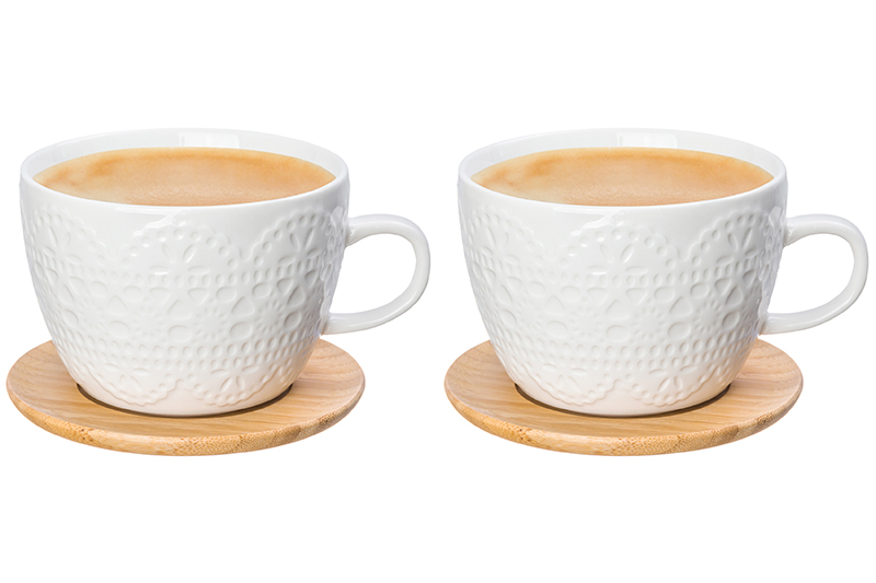 Чашка для капучино и кофе латте 500 мл 14*11,2*8 см "Кружево" + дерев. подставка (2 шт.)