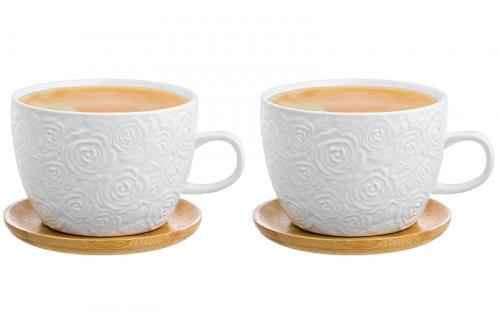 Чашка для капучино и кофе латте 500 мл 14*11,2*8 см "Розы" + дерев. подставка (2 шт.)