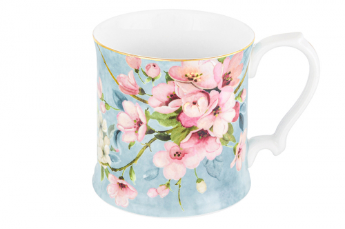 Кружка 380 мл 12,3*9*9 см "Яблоневый цвет на голубом" NEW BONE CHINA