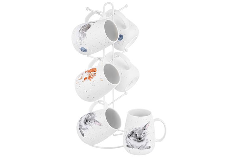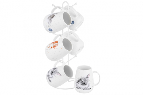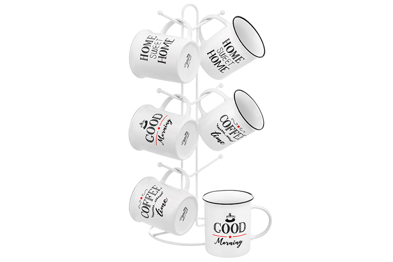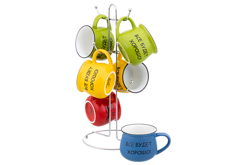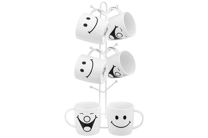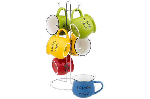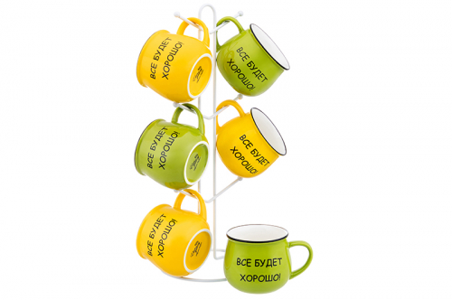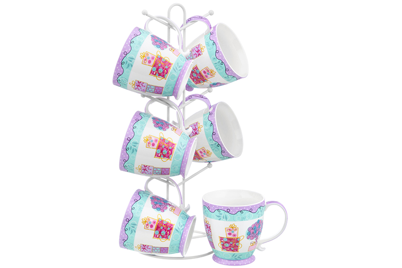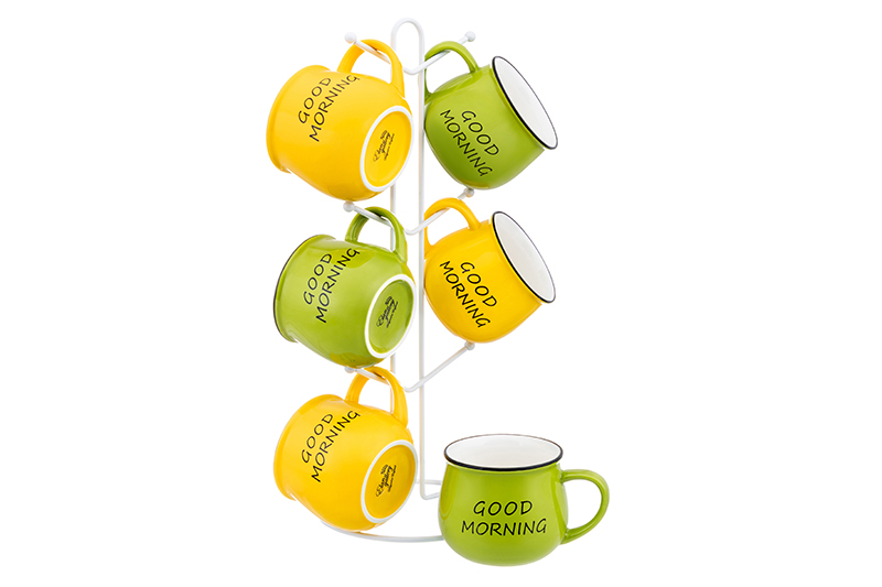 Набор 6 кружек 350 мл "Утренняя улыбка" на металлической подставке 15*15*41,5 см