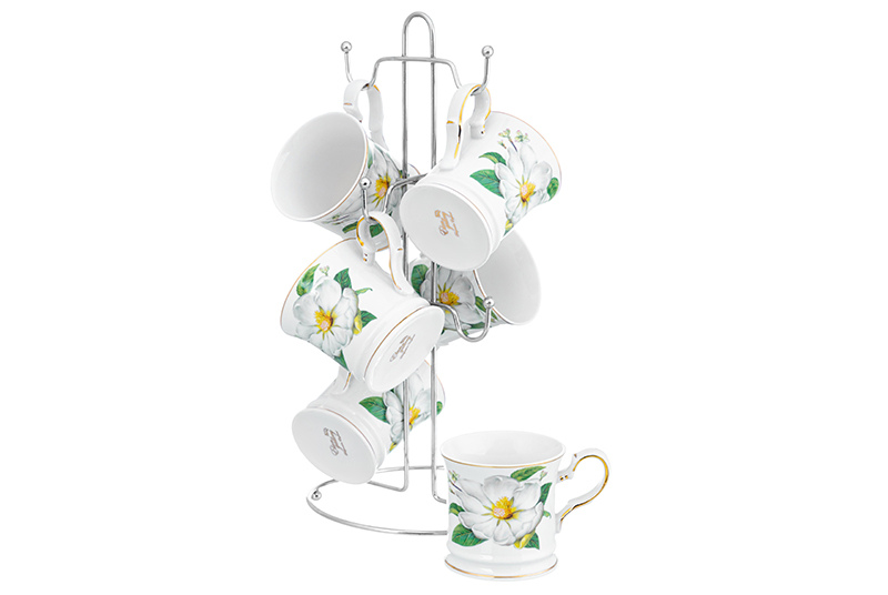 Набор 6 кружек 170 мл "Белый шиповник" на металлической подставке 15*15*35 см