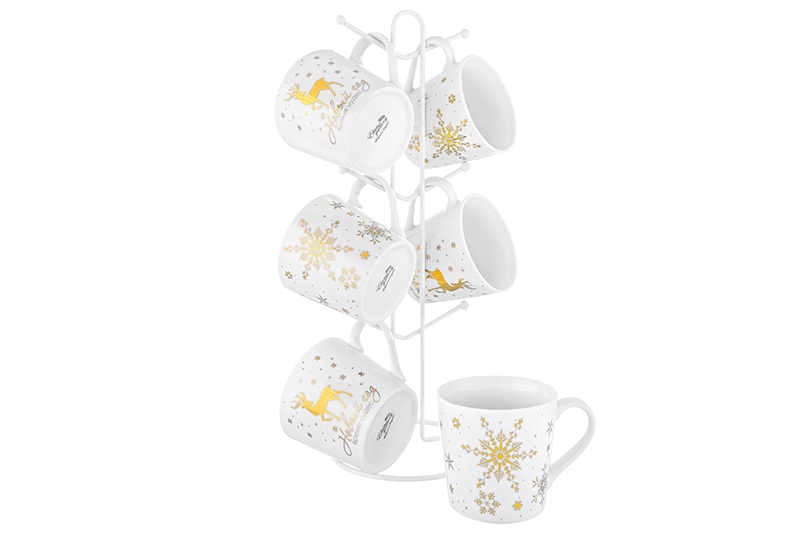 Набор 6 кружек 350 мл "Снежинка с золотом" на металлической подставке 15*15*41,5 см