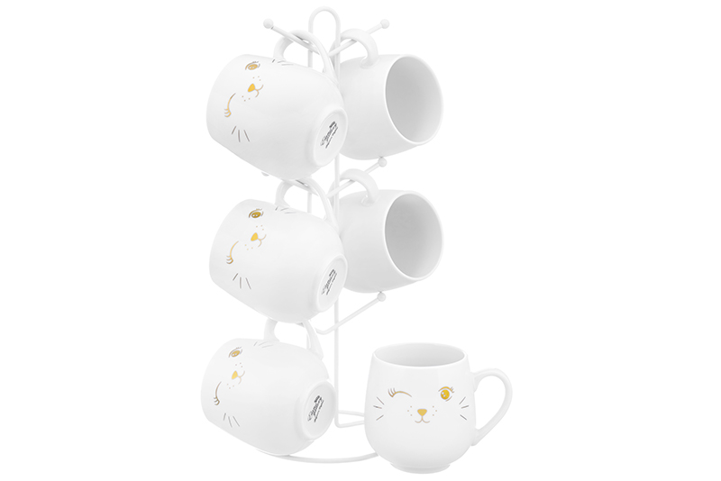 Набор 6 кружек 530 мл "Киска" на металлической подставке 15*15*41,5 см