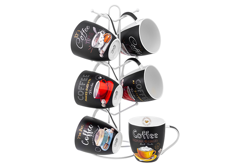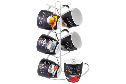 Набор 6 кружек 490 мл "Утренний кофе" +"Кофе тайм" (4 шт.) на металлич. подставке 15*15*41,5см