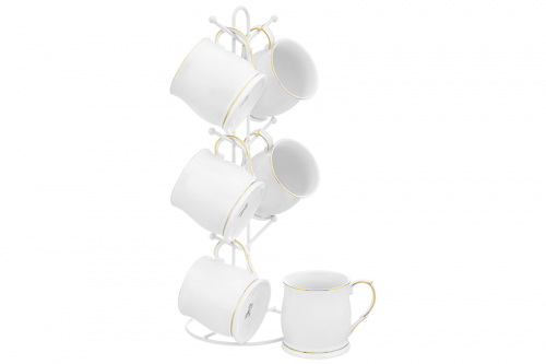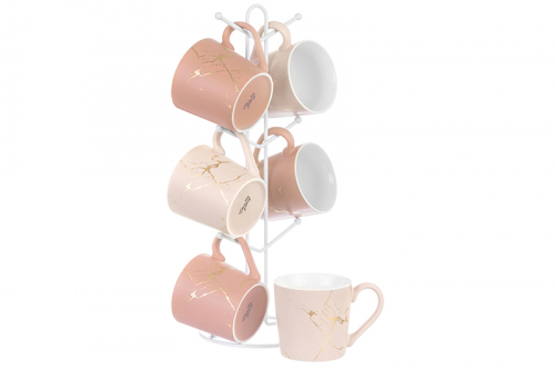Набор 6 кружек 400 мл "Золотой мрамор" на металлической подставке 15*15*41,5 см