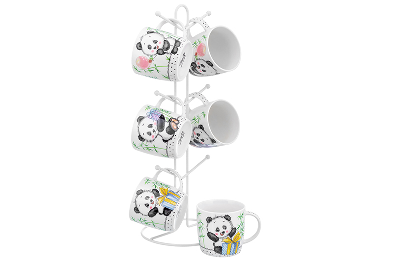 Набор 6 кружек 300 мл "Панда с большим подарком"(2)+"Панда"(2)+"Панда с подарком"(2),мет.под