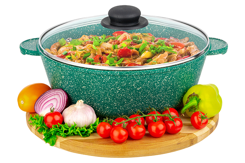 Без акции 2878 руб! Жаровня (сотейник) 24 см 3 л ГАРМОНИЯ ВКУСА "Изумруд" С КРЫШКОЙ ф24, 30,5*25*14 см