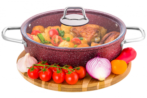 Без акции 2878 руб! Жаровня (сотейник) 24 см 3 л ГАРМОНИЯ ВКУСА "Рубин" С КРЫШКОЙ ф24, 30,5*25*14 см