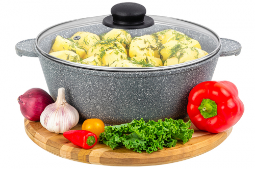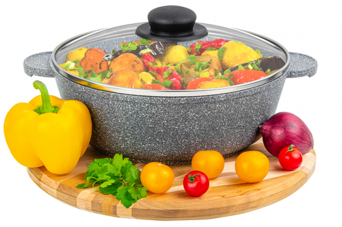 Без акции 2964 руб! Жаровня (сотейник) 26 см 3,7 л ГАРМОНИЯ ВКУСА "Серый агат" С КРЫШКОЙ ф26, 32,5*27*14,5 см