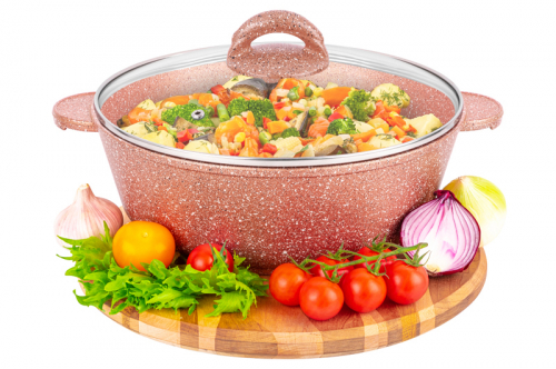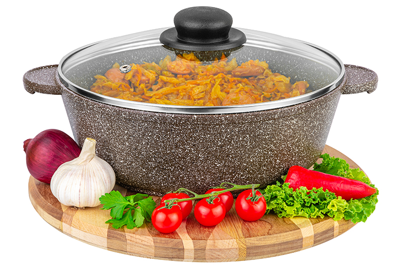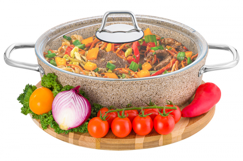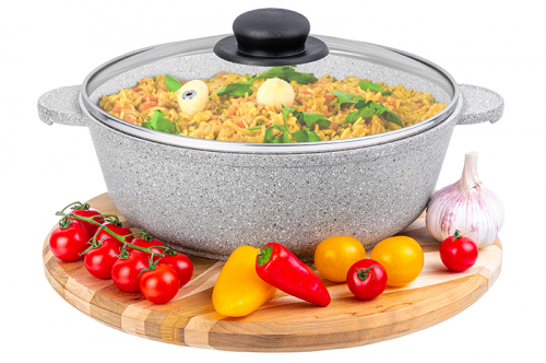 Без акции 2878 руб! Жаровня (сотейник) 24 см 3 л ГАРМОНИЯ ВКУСА "Серый мрамор" С КРЫШКОЙ ф24, 30,5*25*14 см