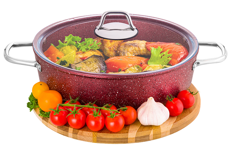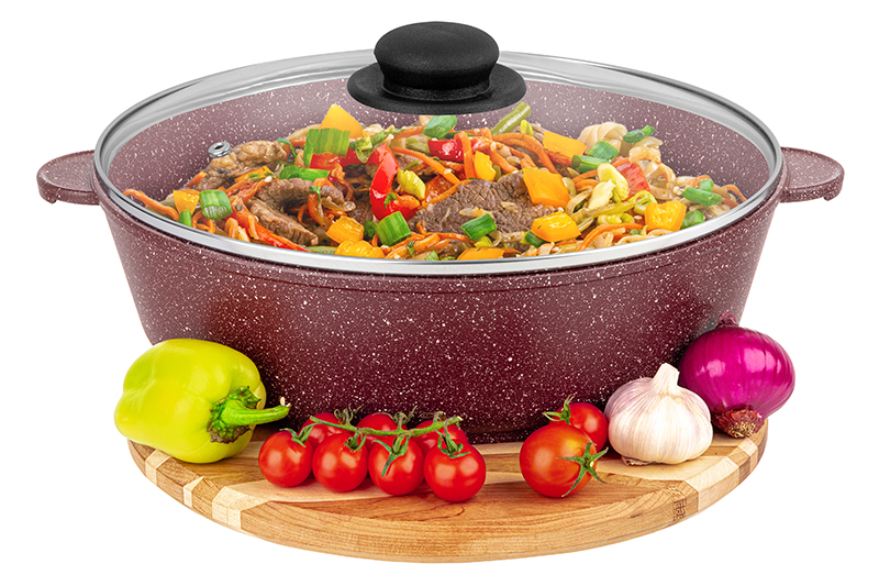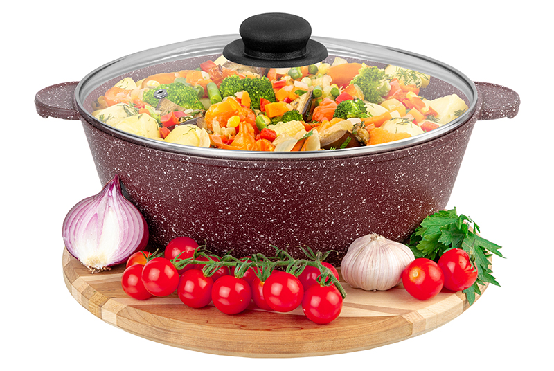 Без акции 3071 руб! Жаровня (сотейник) 28 см 4,5 л ГАРМОНИЯ ВКУСА "Рубин" С КРЫШКОЙ ф28, 35*29*14,5 см