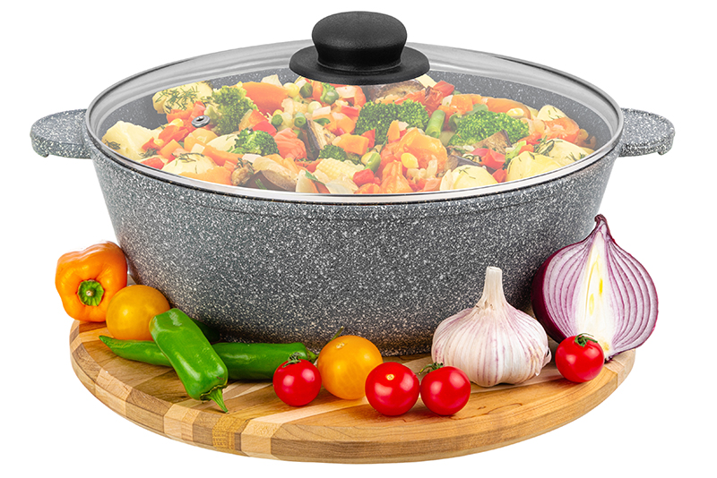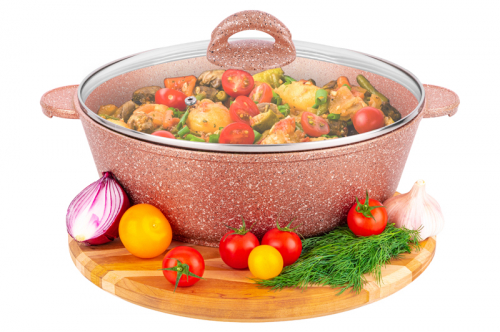 Без акции 3071 руб! Жаровня (сотейник) 28 см 4,5 л ГАРМОНИЯ ВКУСА "Серый мрамор" С КРЫШКОЙ ф28, 35*29*14,5 см