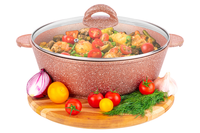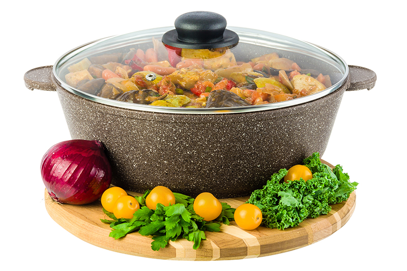 Без акции 3071 руб! Жаровня (сотейник) 28 см 4,5 л ГАРМОНИЯ ВКУСА "Коричневый опал" С КРЫШКОЙ ф28, 35*29*14,5 см