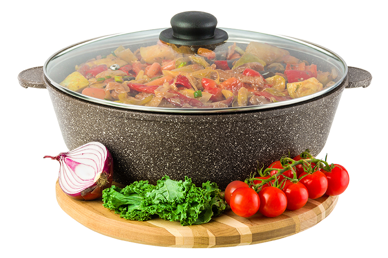 Без акции 4083 руб! Жаровня (сотейник) 32 см 5,5 л ГАРМОНИЯ ВКУСА "Серый агат" С КРЫШКОЙ ф32, 38,5*33*15 см