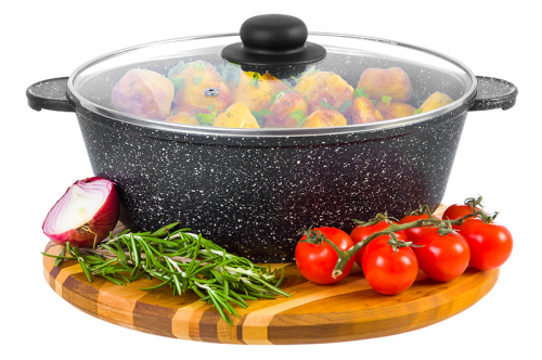 Без акции 2880 руб! Жаровня (сотейник) 28 см 4,5 л ГАРМОНИЯ ВКУСА "Черный мрамор" С КРЫШКОЙ ф28, 35*29*14,5 см