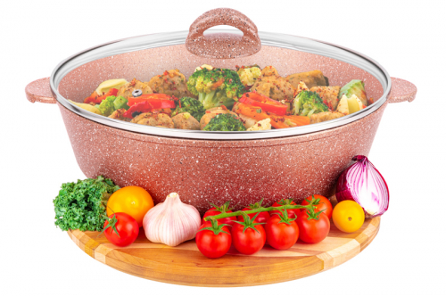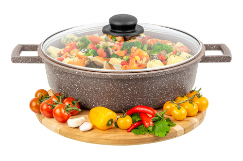 Без акции 2951 руб! Жаровня (сотейник) 28 см 4,45 л ГАРМОНИЯ ВКУСА "Коричневый мрамор" ИНДУКЦ, С КР.ф28, 39,5*30*14,5 см