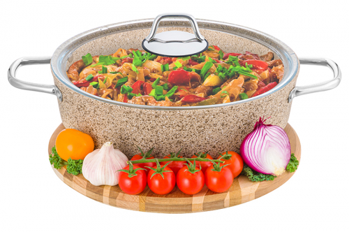 Без акции 3071 руб! Жаровня (сотейник) 28 см 4,5 л ГАРМОНИЯ ВКУСА "Серый агат" С КРЫШКОЙ ф28, 35*29*14,5 см