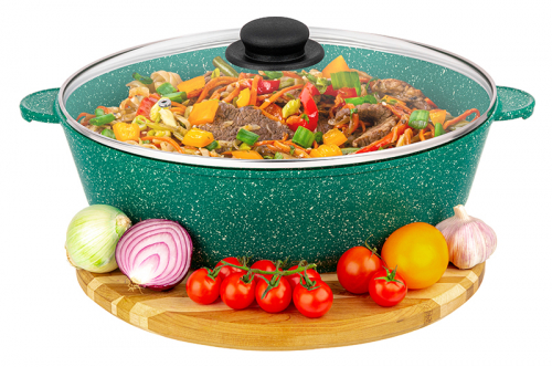 Без акции 4083 руб! Жаровня (сотейник) 32 см 5,5 л ГАРМОНИЯ ВКУСА "Изумруд" С КРЫШКОЙ ф32, 38,5*33*15 см