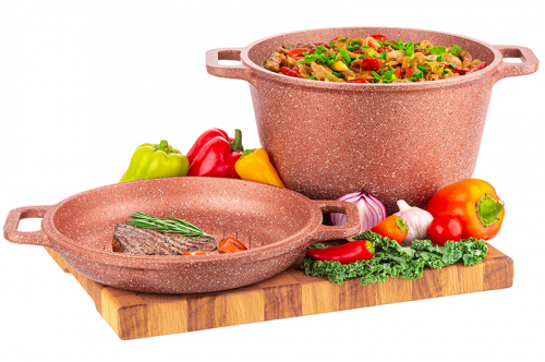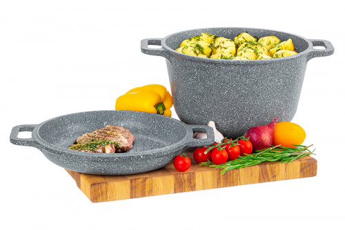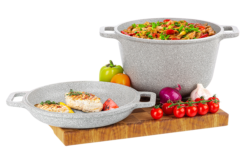 Без акции 5060 руб! Казан 5 л ГАРМОНИЯ ВКУСА "Серый мрамор" с крышкой СКОВОРОДОЙ-ГРИЛЬ, 32*25,5*20 см