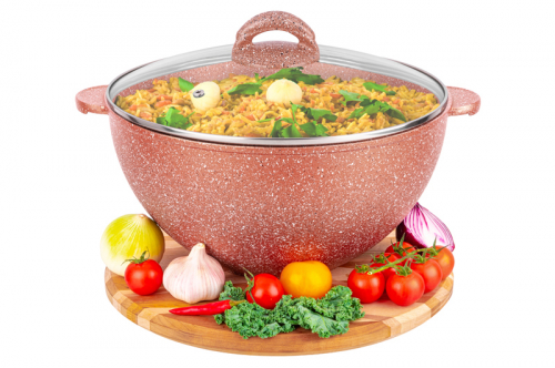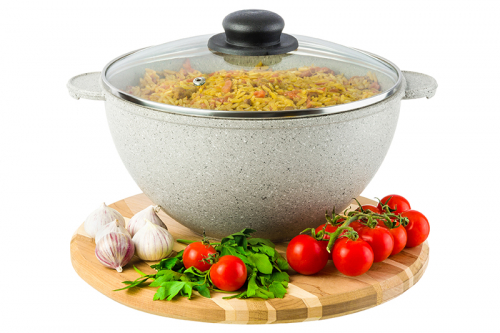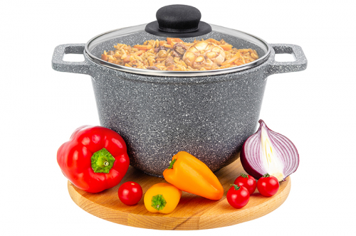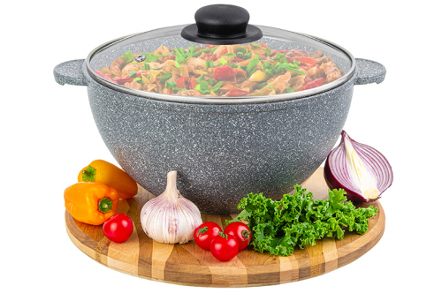 Без акции 2901 руб! Казан 3 л ГАРМОНИЯ ВКУСА "Серый мрамор" С КРЫШКОЙ ф20, 28*21,5*18,5 см