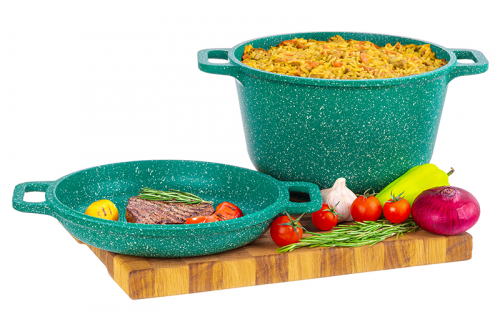Без акции 5060 руб! Казан 5 л ГАРМОНИЯ ВКУСА "Изумруд" с крышкой СКОВОРОДОЙ-ГРИЛЬ, 32*25,5*20 см
