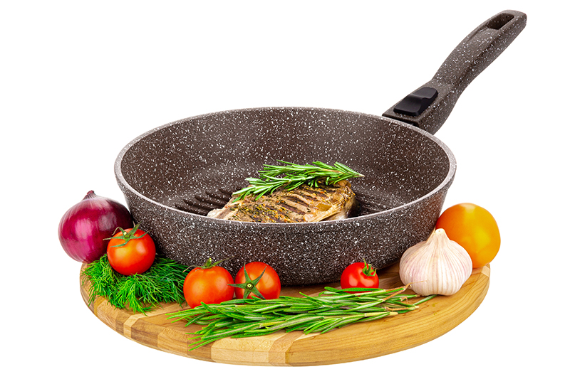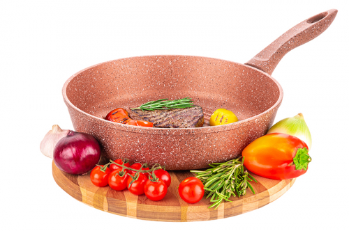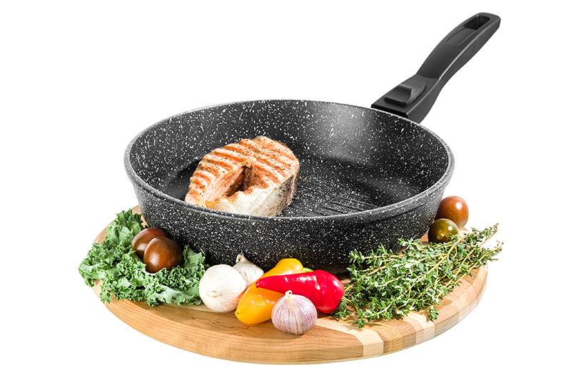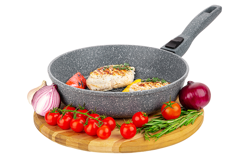 Без акции 2341 руб! Сковорода - гриль круглая 24 см ГАРМОНИЯ ВКУСА "Серый мрамор" без крышки, с/р, 45*25*11 см