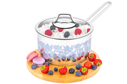 Без акции 2670 руб! Ковш 1,6 л ГАРМОНИЯ ВКУСА "Серебро Ирисы" синие С КРЫШКОЙ ф16, 33*17,5*13,3 см