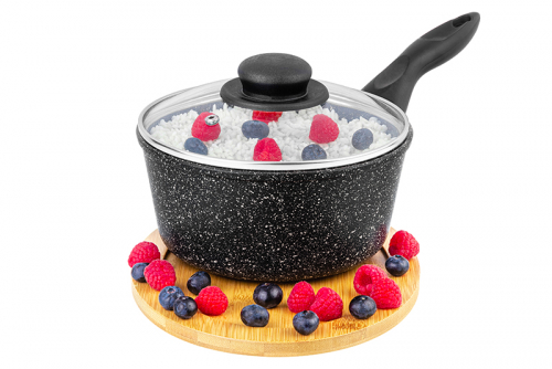 Без акции 1894 руб! Ковш 1,5 л ГАРМОНИЯ ВКУСА "Черный мрамор" С КРЫШКОЙ ф18, н/р, 34,5*19*13,5 см