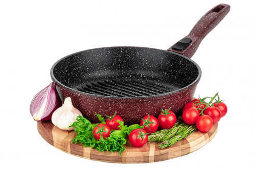 Без акции 2341 руб! Сковорода - гриль круглая 24 см ГАРМОНИЯ ВКУСА "Рубиновый дуэт" без крышки, с/р, 45*25*11 см