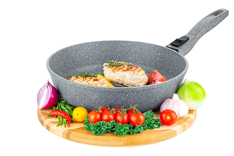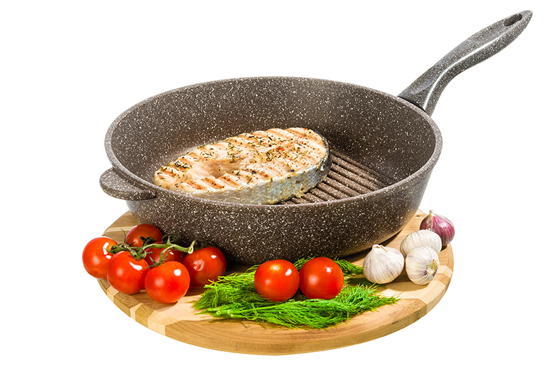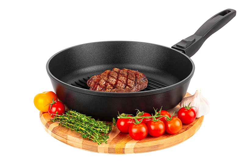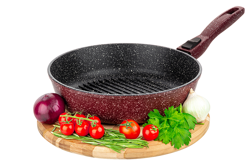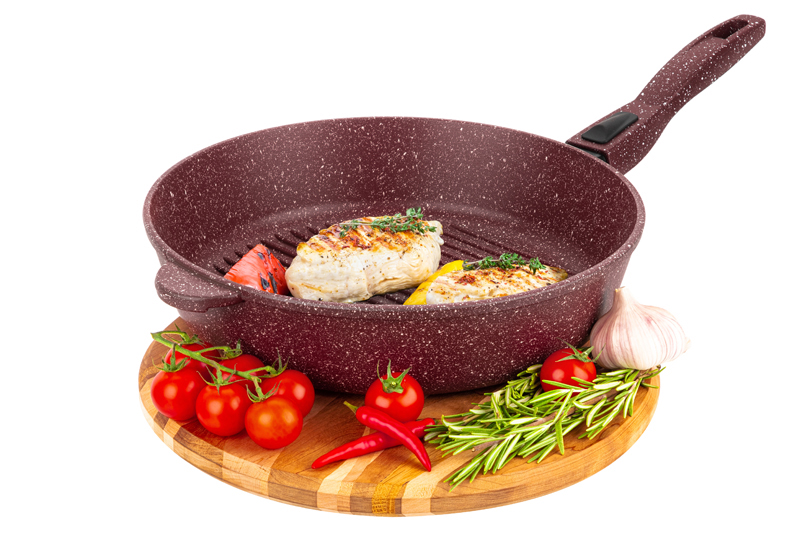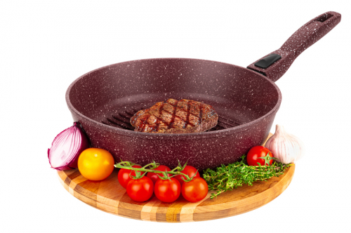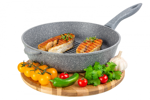 Без акции 2436 руб! Сковорода - гриль круглая 26 см ГАРМОНИЯ ВКУСА "Серый агат" без крышки, с/р, 47*27*10,5 см