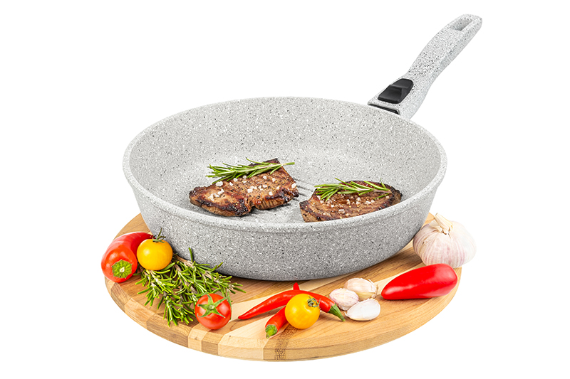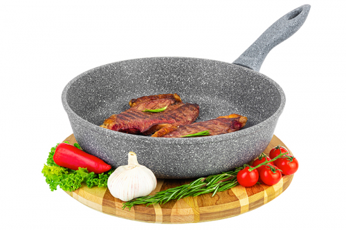 Без акции 2436 руб! Сковорода - гриль круглая 26 см ГАРМОНИЯ ВКУСА "Серый мрамор" без крышки, с/р, 47*27*10,5 см