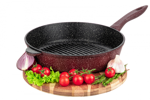 Без акции 2715 руб! Сковорода - гриль круглая 28 см ГАРМОНИЯ ВКУСА "Рубин" без крышки, с/р, 51,5*29*10 см