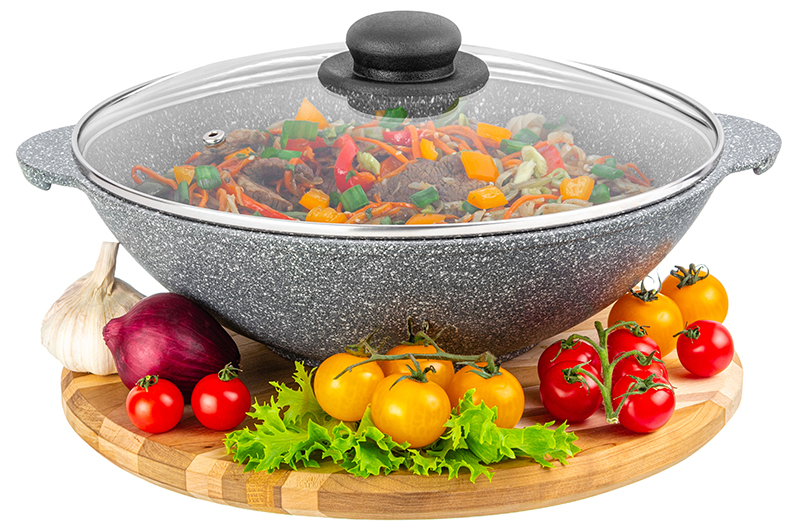 Без акции 2649 руб! Сковорода ВОК 28 см 3 л ГАРМОНИЯ ВКУСА "Серый агат" С КРЫШКОЙ ф28, 33,5*29,5*13,5 см