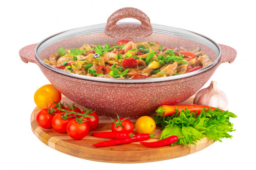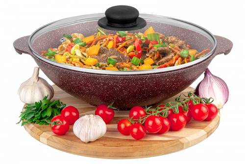 Без акции 2649 руб! Сковорода ВОК 28 см 3 л ГАРМОНИЯ ВКУСА "Коричневый опал" С КРЫШКОЙ ф28, 33,5*29,5*13,5 см