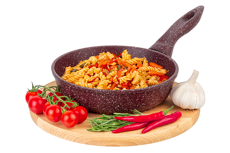 Без акции 1780 руб! Сковорода глубокая 18 см ГАРМОНИЯ ВКУСА "Рубиновый дуэт" без крышки, н/р, 33,5*19*8,5 см