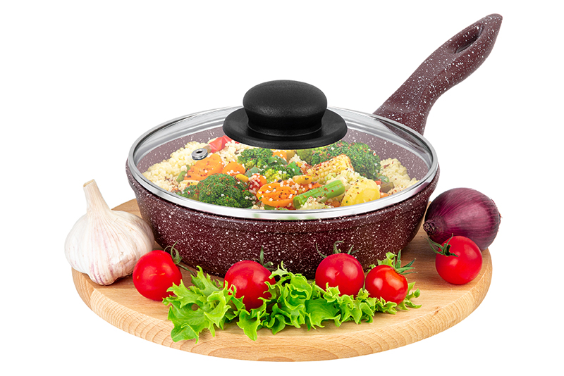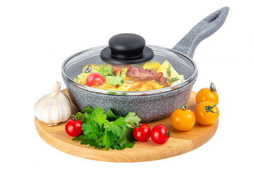Без акции 1957 руб! Сковорода глубокая 18 см ГАРМОНИЯ ВКУСА "Серый мрамор" С КРЫШКОЙ ф18, н/р, 33,5*19*10 см