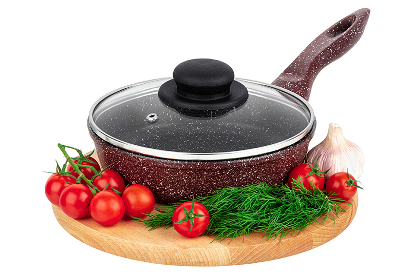 Без акции 1787 руб! Сковорода глубокая 18 см ГАРМОНИЯ ВКУСА "Черный мрамор" С КРЫШКОЙ ф18, н/р, 33,5*19*10 см
