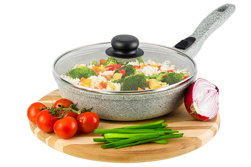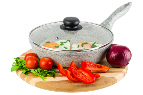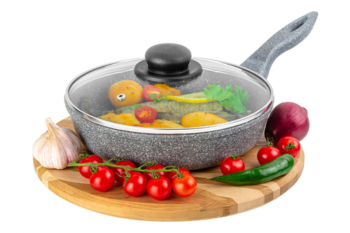 Без акции 2159 руб! Сковорода глубокая 22 см ГАРМОНИЯ ВКУСА "Серый агат" С КРЫШКОЙ ф22, н/р, 38*23*10,5 см