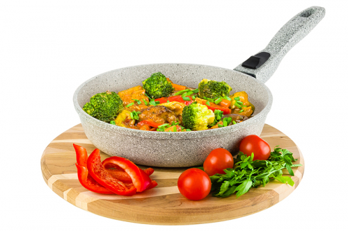 Без акции 2171 руб! Сковорода глубокая 22 см ГАРМОНИЯ ВКУСА "Серый мрамор" без крышки, с/р, 43*23*9 см