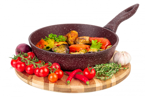 Без акции 2395 руб! Сковорода глубокая 22 см ГАРМОНИЯ ВКУСА "Рубиновый дуэт" С КРЫШКОЙ ф22, с/р,43*23*10,5 см