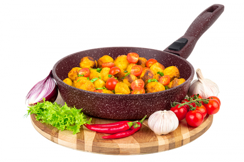Без акции 2171 руб! Сковорода глубокая 22 см ГАРМОНИЯ ВКУСА "Рубиновый дуэт" без крышки, с/р, 43*23*9 см